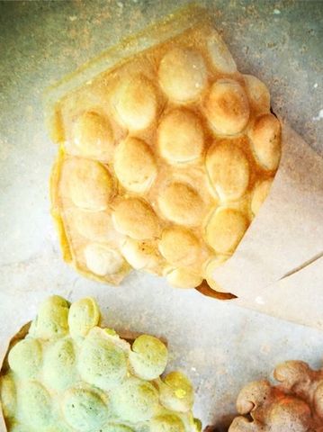 Select treats sandwiched between a fluffy bubble waffle cake and topped with whip cream and sprinkles. {optional}